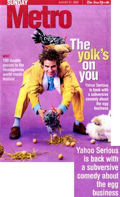 Yahoo Serious (pictured) returns in another of his madcap slapstick Aussie comedies. In amongst the incredible mishaps that befall the hero is an opposites-attract romance between two of lifes great misfits. Roger Crumpkin (Serious) had any imagination beaten out of him as a kid and as a result has become a compulsive dismantler. Anything he gets he pulls apart, hardly ideal qualifications for being maintenance man in a Sydney egg factory. Too shy and accident-prone to go out with girls, Roger is resigned to spending the rest of his days loveless and surrounded by junk. But when he meets the equally oddball Sunday Valentine (Helen Dallimore), a chicken sexer from the country who has a compulsive disorder for fixing things and a passion for UFOs, Roger is smitten. His discovery of a mysterious VW hubcap buried in solid sandstone for millions of years could be proof of aliens and the way to Sundays heart. But first theyll have to escape Rogers serial killer boss, who turns out to be Sundays ex-boyfriend.