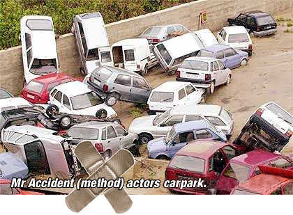 Despite performing hundreds of stunts Yahoo's injuries were kept to a minimum by his friend, stunt co-ordinator Rocky McDonald's clever suggestion that Yahoo land on his head as much as possible. The crew found this revolutionary technique also helped Mr Serious make better directorial decisions. Mr Accident sucessfully premiered in Sydney, Australia despite heavy lobbying from right wing safety groups who fear a wave of copycat accidents when the movie is released worldwide. Yahoo commented as he stepped from his Datsun 120Y which arrived by tow truck at the premiere "It's a fine line between the great Australian tradition of ridiculous, life threatening acts of gross stupidity and...arrrrgggghh!"