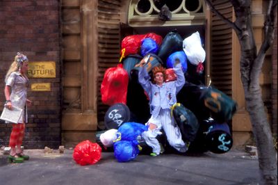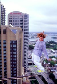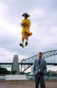 However exciting, the film was nonetheless a fairly exhausting process for Yahoo. Says Ross: "He started work one morning by throwing himself down 16 flights of stairs in a garbage can avalanche. After lunch he had to fall off a TV aerial on an apartment building 28 floors above Sydney's Circular Quay." Says Yahoo: "If I thought about it for too long I probably wouldnÕt do it, but the fact is I really do enjoy it. In Newcastle, where I grew up, a bloke's right of passage to manhood is often dumb, life-threatening acts of extreme stupidity. I support that and hope that there'll always be a part of me which refuses to take a mature attitude on the subject. If in the end, the audience is entertained and we can make them laugh a little, then a small to reasonable amount of pain is okay."