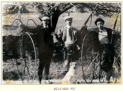 History of the Kelly GangKelly Gang 1880 Ned 'Yahoo' Kelly next to bloke in white horse suit. Kelly Gang 1901 (now with get-away bikes) Ned 'Yahoo' Kelly armed to the teeth standing behind